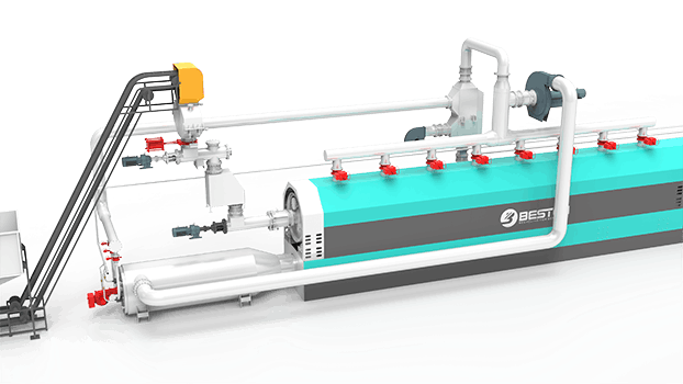 全連續(xù)煉油設(shè)備采用氮氣置換密封料倉中空氣,維持熱解爐內(nèi)的貧氧環(huán)境。