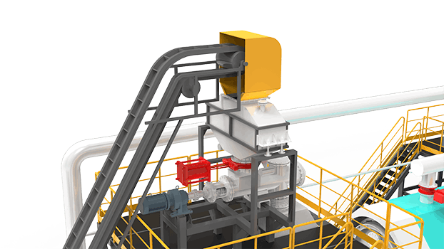全連續(xù)煉油設(shè)備采用雙螺旋輸送機、密封料倉和電子稱重系統(tǒng),對進(jìn)料量進(jìn)行監(jiān)測、控制和統(tǒng)計。