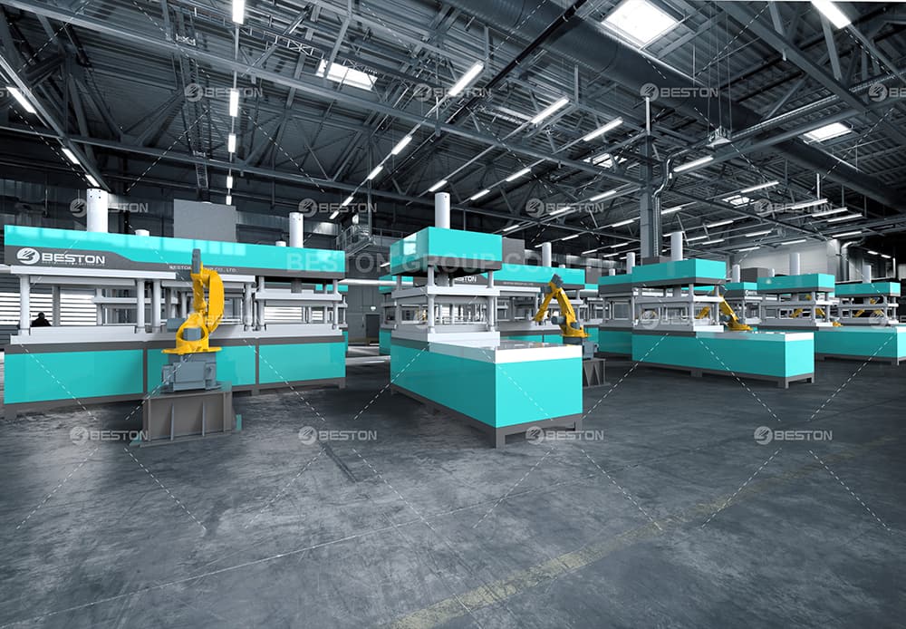 蛋托機屬于紙漿模塑設備,使用蛋托模具將廢紙等原料加工成蛋托制品。過程為將作為廢紙等原材料經過紙漿系統處理成濃漿,進入勻漿池進行攪拌,調制合適的濃度后泵送入成型系統,根據成型機不同的模具形狀加工成不同類別的蛋托制品,最終由烘干系統蒸發制品多余水分,蛋托烘干系統可以采用金屬烘干室和磚砌烘干。
